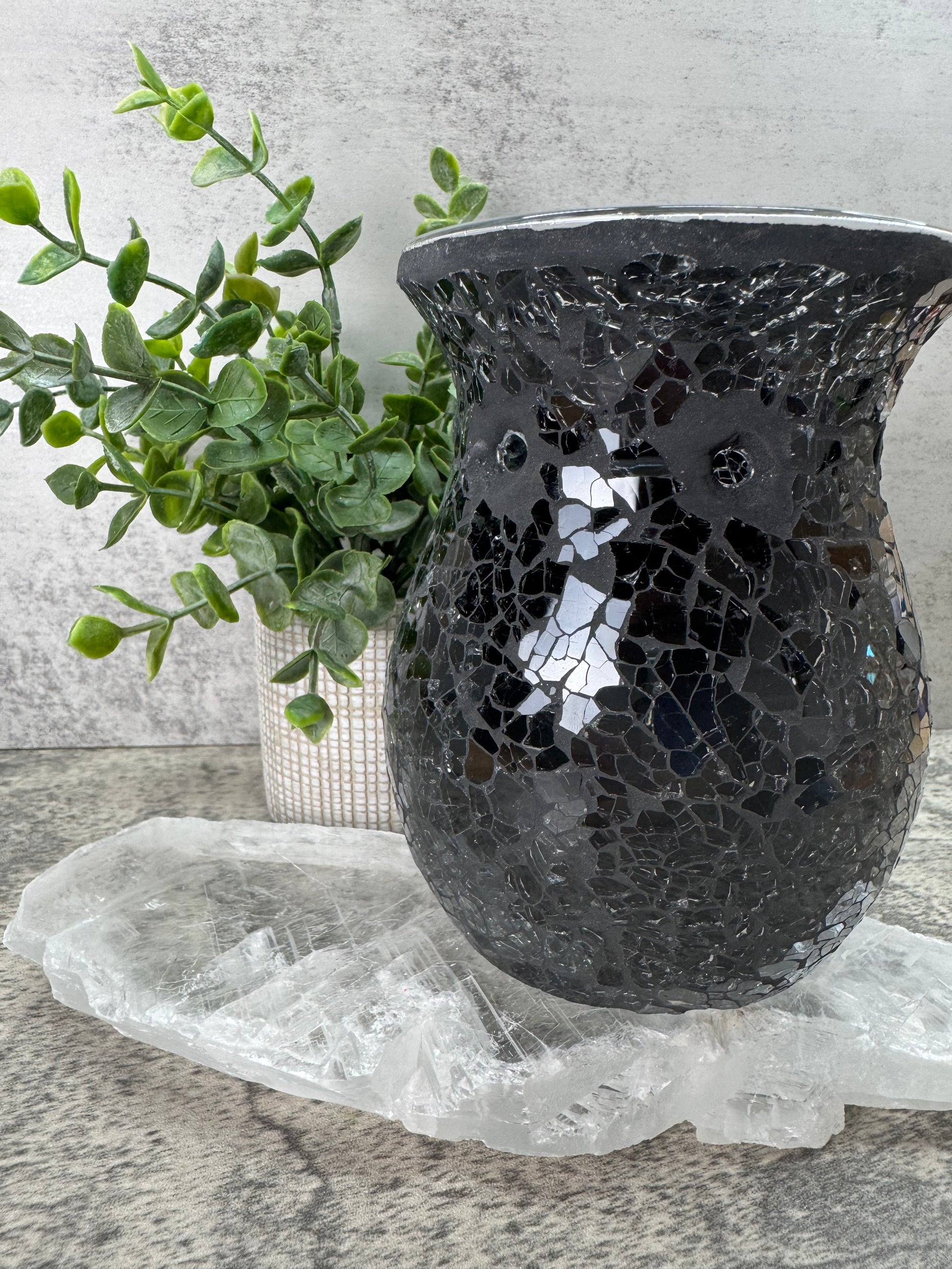 Experience the beauty and warmth of our Mosaic Tea Light Warmer. Made with glass, it adds a touch of elegance to any room. Enjoy the peaceful ambiance created by the soft glow of a tea light, while the warmer gently melts your favorite wax scents. Perfect for creating a relaxing atmosphere. Comes in gold, black & iridescent white.